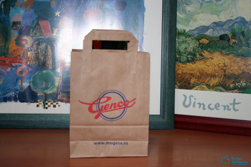 Los sistemas de impresión que utilizamos son varios pero en concreto en este modelo de la oferta, es la mini flexo. Es un sistema también antiguo y que ayuda a darle ese carácter vintage a la impresión. Si hemos mejorado añadiendo tintas modernas como son las tintas al agua, no agresivas con el medio ambiente. El resultado es muy artesanal y auténtico, que combinado con el asa plana exterior y el papel reciclado kraft queda como muy rústico y original.